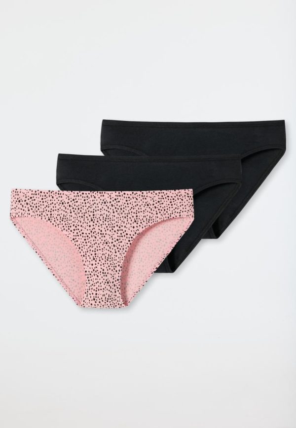 Diese coolen Slips sind das perfekte Wäsche-Trio für trendy Mädchen. Mit schwarzen Punkten auf Powder Pink oder uni schwarz – der modische Look überzeugt. Elastisches Single-Jersey-Material aus Organic Cotton und ein softer Bund fühlen sich perfekt am Körper an und sorgen für ein herrliches Tragegefühl. Natürlich in bester SCHIESSER-Qualität!