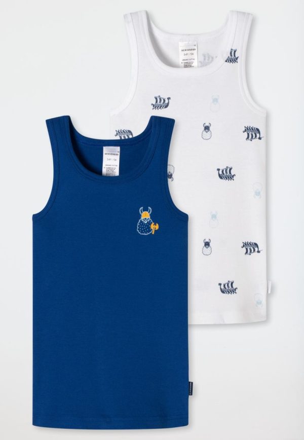- Jungenunterhemden in Dunkelblau mit Wikinger-Motiv und in Weiß mit Wikinger-Allover